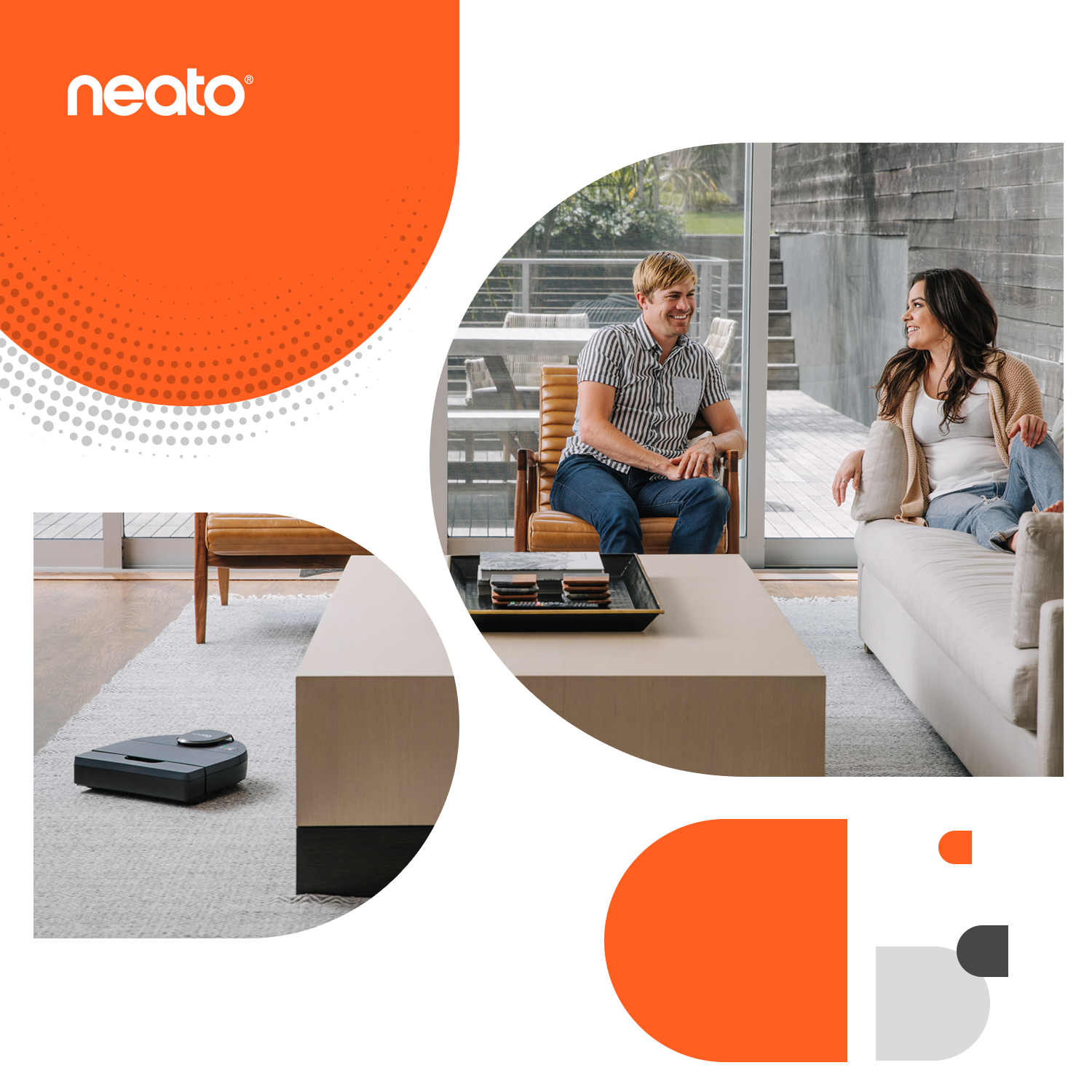 To help set Neato apart from other robotic brands, I rebranded Neatoβs social presence to tell a greater concise story that connected back to their principles. Neato products were designed with the βform follows functionβ guideline where their unique shape adheres to the shape of our living spaces. With this value in mind, a visual narrative was developed that could span various creative assets on their social platforms.